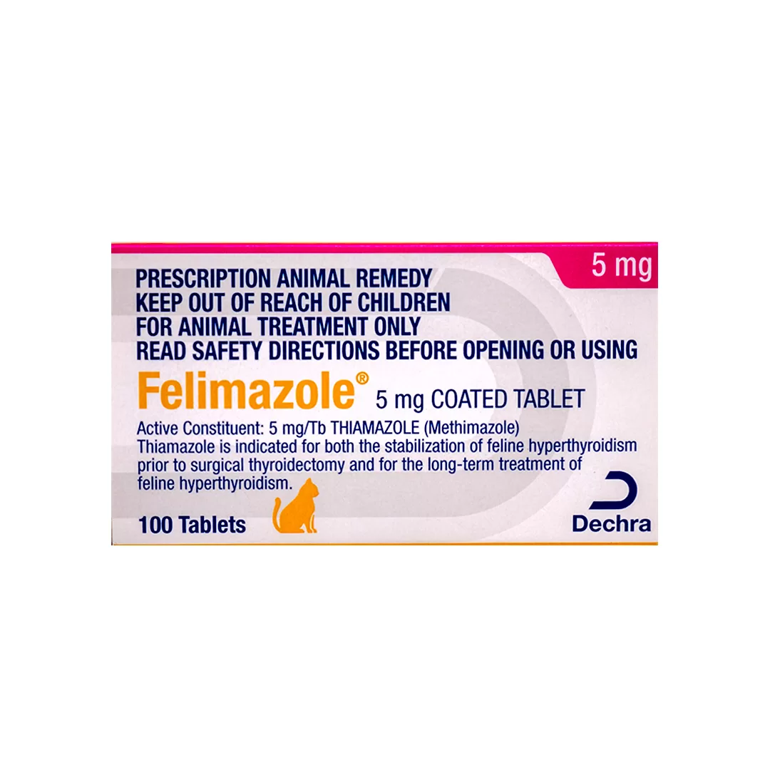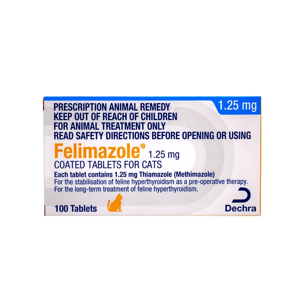 Stabilisation of feline hyperthyroidism prior to surgical thyroidectomy and for the long-term treatment of feline hyperthyroidism.